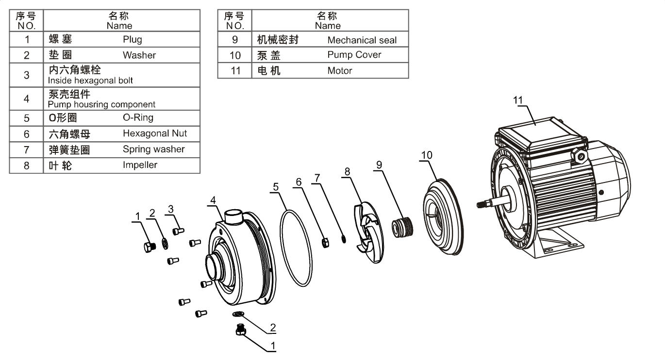 Bơm một tầng nằm ngang bằng thép không gỉ với cánh quạt hở
