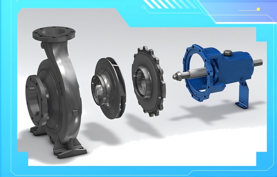 Các bộ phận chính bao gồm vỏ xoắn ốc, nắp bơm và cánh quạt có nhiều tùy chọn vật liệu khác nhau để phù hợp với nhiều loại môi chất lỏng.